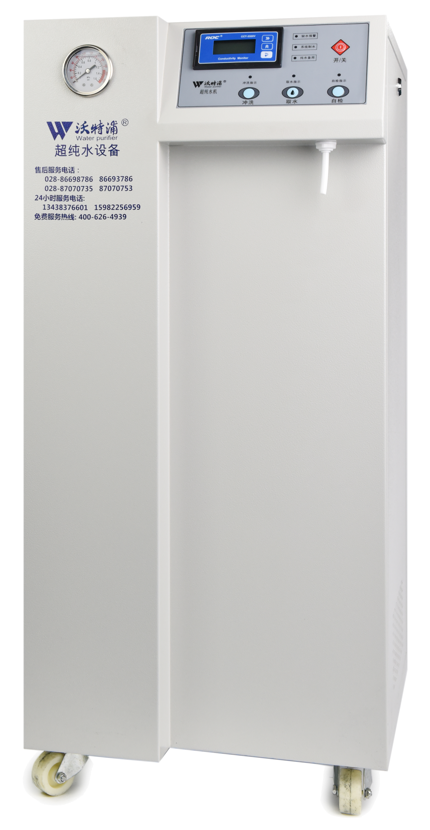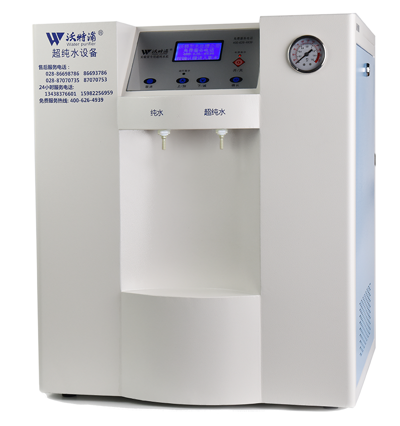 采用雙波長紫外消解系統,除熱源超濾膜組件,采用進口離子交換樹脂過濾,使超純水能滿足各種實驗要求。